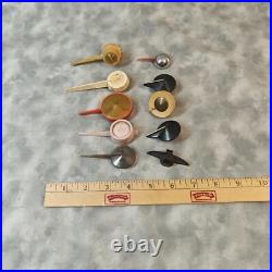 This vintage lot of 10 tube radio dial pointers and tuning knobs includes a variety of Art Deco and Mid-Century designs from 1930s-1950s radios. These were used for fine-tuning radio stations on early tube radios, often mounted on tuning dials or selector panels. Lot Includes:? Bakelite, plastic, metal, and brass pointers? Red, gold, black, chrome, and neutral-tone finishes? Various mounting styles with press-fit and screw-on hubs? Art Deco and Mid-Century designs, perfect for restorations. These are perfect for. Vintage tube radio restoration projects. Collectors searching for authentic replacement parts. Steampunk or industrial art projects. Material: Bakelite, Plastic, Metal, Brass. Type: Radio Dial Pointers & Tuning Knobs. Style: Art Deco, Mid-Century. Estimated Item Dimensions & Weight. Length: Various sizes, approx. 1.5″ to 4.5″. Pre-owned with some patina, minor wear, and oxidation. Some have light surface wear or slight imperfections. See photos for exact condition. Please review the photos carefully and feel free to ask any questions, concerns, or offers! The item in the photos is the exact item you will receive. If any details in the description seem different from the pictures, please trust the photos as the most accurate representation of the item. If you notice an error in the listing, please feel free to let me know! All items are stored in a clean, weather- and temperature-controlled environment, free of pets and smoke. Thank you for supporting my small business! Be sure to check out my store for more great finds. Vintage radio dial pointers, tube radio tuning indicators, Art Deco radio knobs, Mid-Century tuning dial pointers, antique radio restoration parts, Bakelite radio knobs, steampunk tuning parts, 1930s radio components.